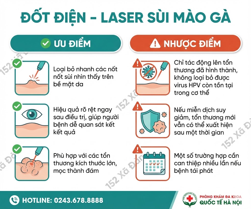 Đốt điện – laser sùi mào gà: xử lý nhanh tổn thương nhưng chưa giải quyết tận gốc