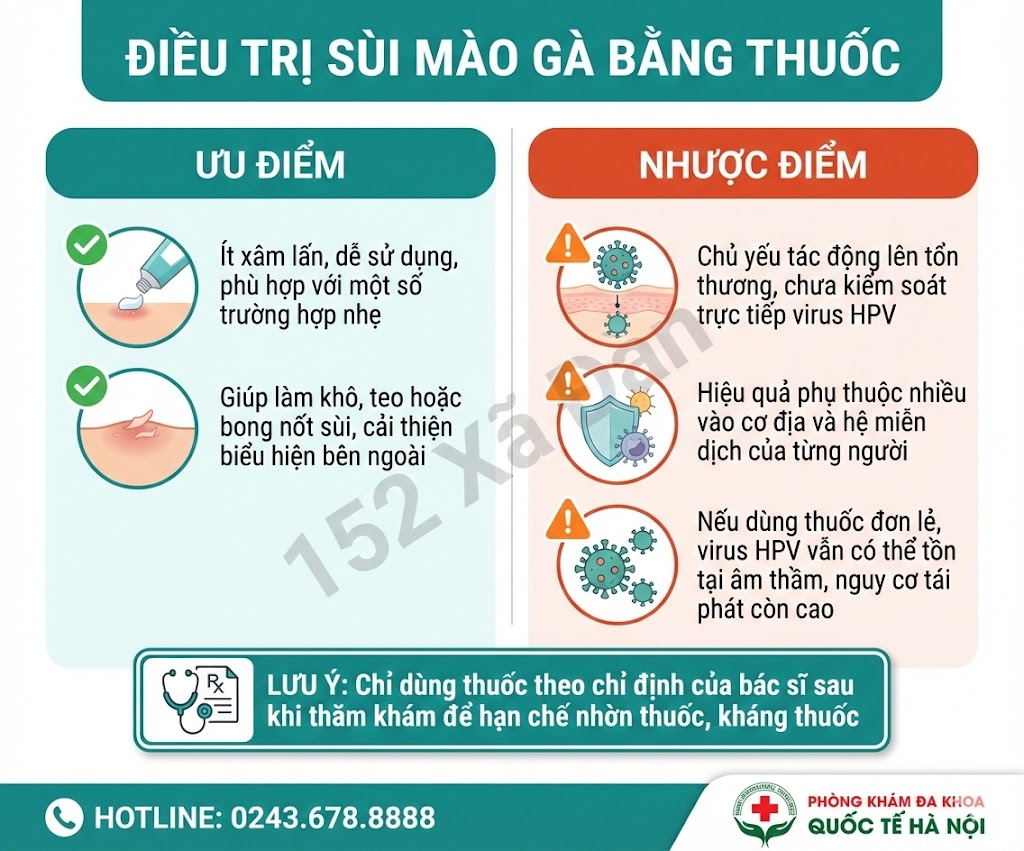 → Do đó, việc dùng thuốc điều trị sùi mào gà cần được chỉ định và theo dõi bởi bác sĩ chuyên khoa, nhằm đánh giá đúng giai đoạn bệnh và xây dựng phác đồ phù hợp, thay vì chỉ xử lý biểu hiện bên ngoài.