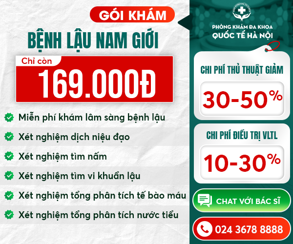 Để tiết kiệm chi phí khám chữa bệnh lậu tiết kiệm chi phí, hiện nay Phòng khám Đa khoa quốc tế Hà Nội – 152 Xã Đàn đang áp dụng gói khám bệnh lậu chuyên sâu 169.000đ (Giá gốc 1.230.000đ) chỉ áp dụng cho bệnh nhân đặt hẹn trước. Tìm hiểu gói khám [TẠI ĐÂY].