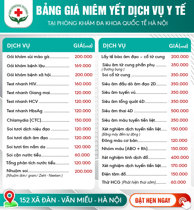 Để giúp người bệnh có thể nắm bắt được khoảng chi phí, từ đó chủ động quyết định thăm khám, Phòng khám Đa khoa quốc tế Hà Nội- 152 Xã Đàn sẽ chia sẻ cụ thể từng hạng mục chi tiết trong bảng giá chữa bệnh lậu hiện nay.