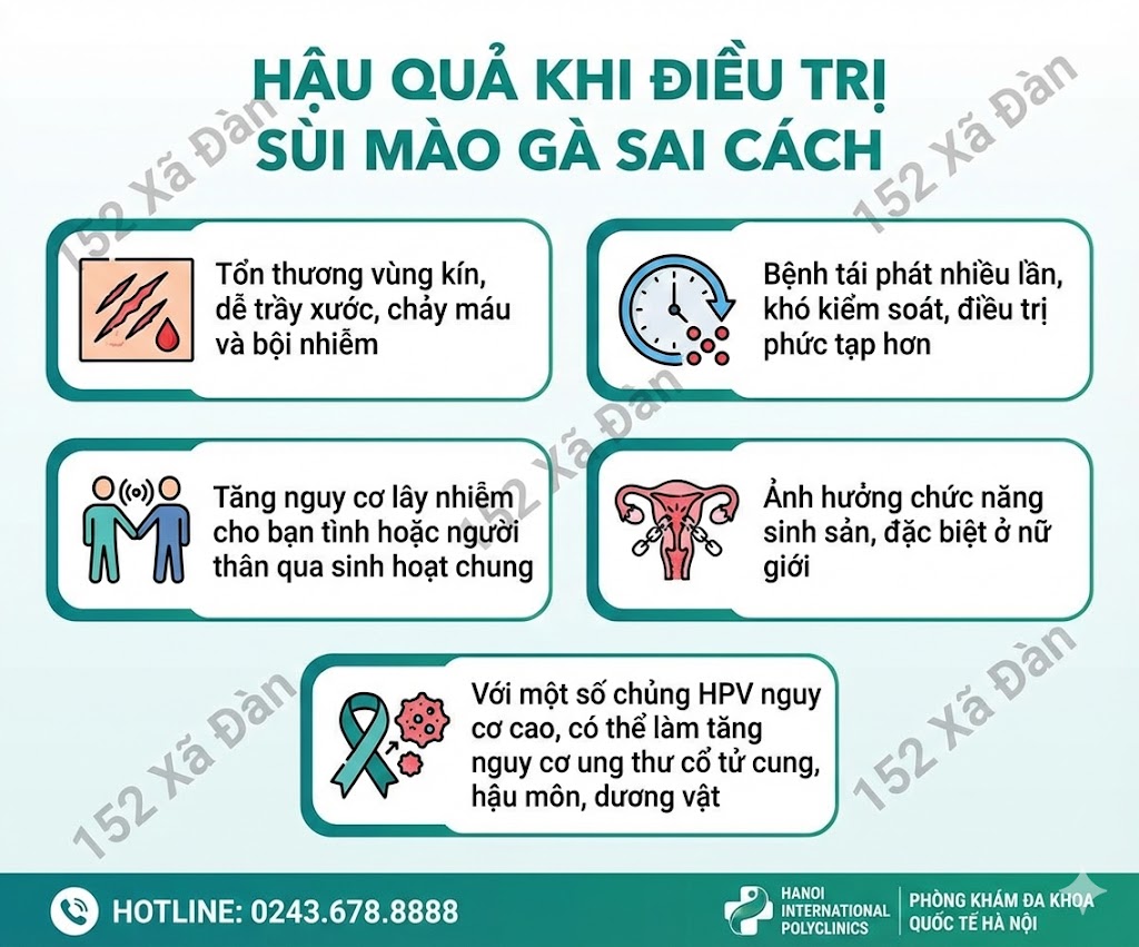 CẢNH BÁO: Sùi mào gà không thể tự khỏi và cũng không thể điều trị hiệu quả bằng thuốc bôi hay mẹo dân gian. Việc tự điều trị vì nghĩ không phải bệnh xã hội chính là nguyên nhân khiến bệnh tiến triển âm thầm và để lại biến chứng nghiêm trọng.