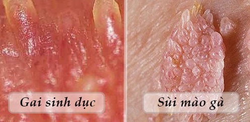 - Gai sinh dục: Là sự phát triển quá mức của tế bào gai ở vùng niêm mạc âm hộ – âm đạo, tạo thành những nốt nhỏ màu trắng hồng, mọc đều thành hàng hoặc cụm, không đau, không ngứa. Gai sinh dục không lây qua đường tình dục, tuy nhiên dễ bị nhầm với sùi mào gà do hình thái tương tự.