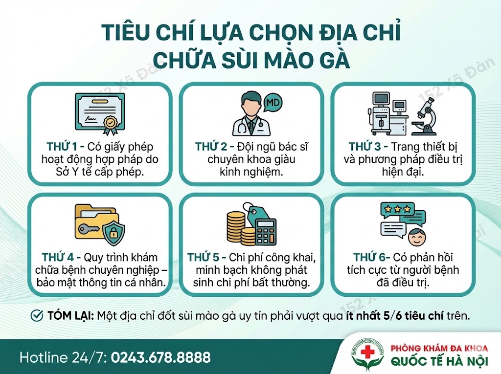 TÓM LẠI: Một địa chỉ đốt sùi mào gà uy tín phải vượt qua ít nhất 5/6 tiêu chí trên. Đặc biệt với bệnh có tính nhạy cảm cao như sùi mào gà, chọn đúng nơi ngay từ đầu sẽ giúp bạn: